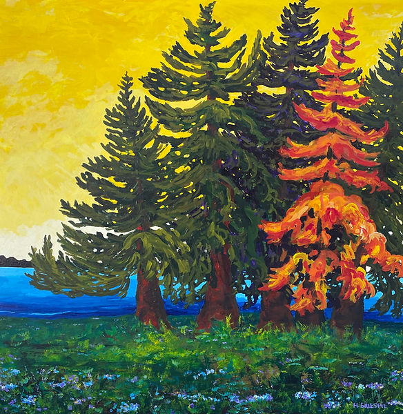 I paint one of a kind colourful landscapes in acrylic.